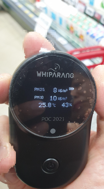 휴대용 실시간 미세먼지 측정기를 들고 다니니 현재 내가 있는 곳의 미세먼지 수치를 바로 확인해서 좋았다.