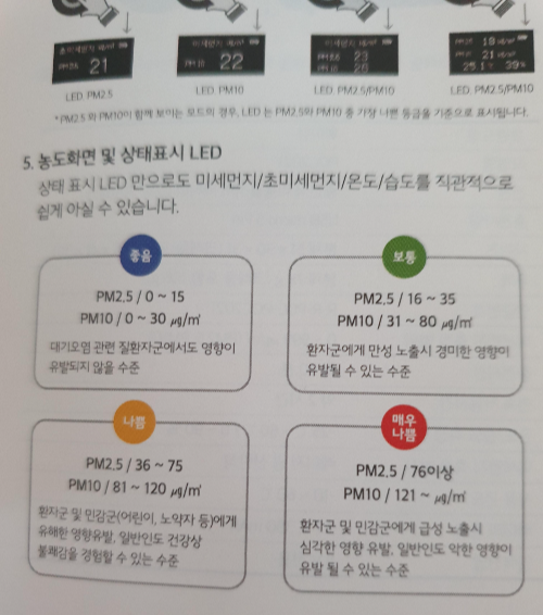 설명서를 보니 측정 값 범위마다 색이 다르게 표시된다고 한다.