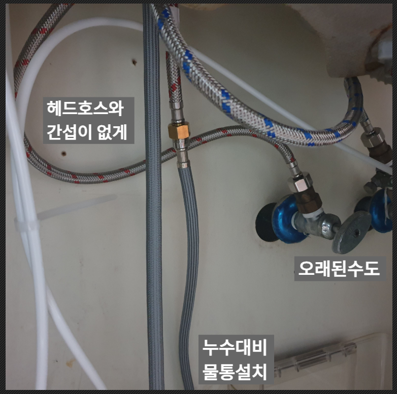 우리 집은 오래된 아파트라서 주방 및 냉온수 밸브를 건들고 싶지 않았다.