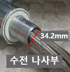 우리 집 싱크대 주방 수전의 나사산은 34.2mm 정도 나왔다.