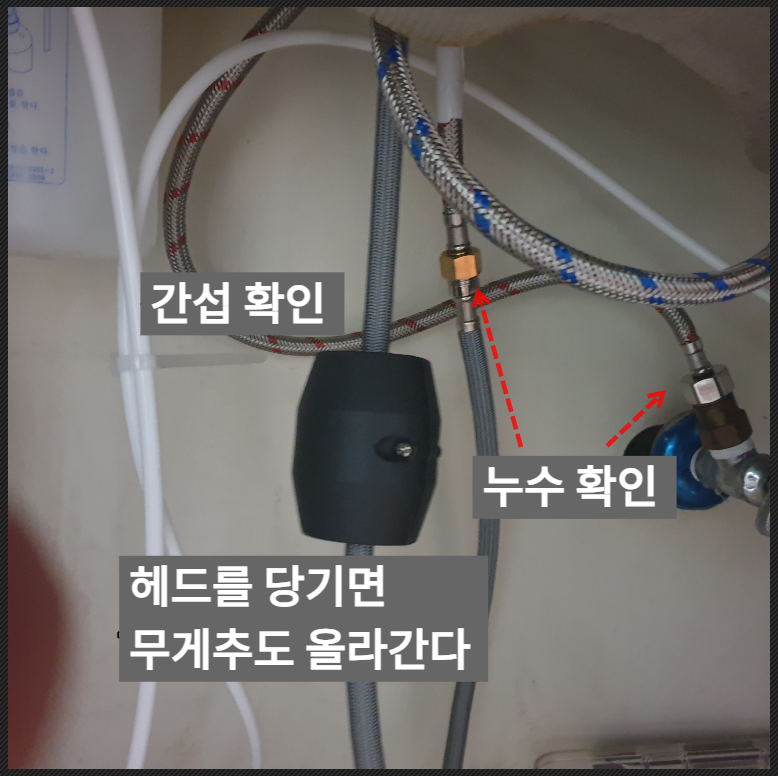 설치 후 한 동안 아래 통을 두고 누수를 잘 체크하자.