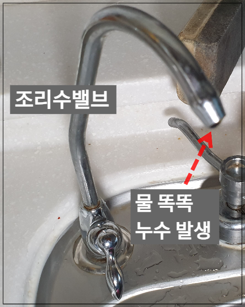 어느 날 조리수 밸브에서 물이 떨어졌다.