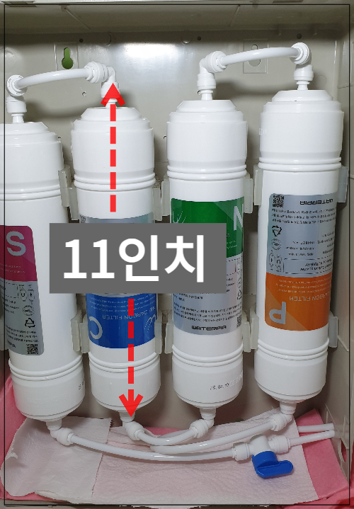 - 우리 집 규격에 맞는 필터인가? 우리 집은 11인치 필터에 호스와 피팅 구멍 사이즈 (1/4인치, 6.35mm )