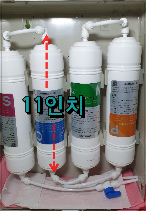 - 우리 집 규격에 맞는 필터인가? 우리 집은 11인치 필터에 호스와 피팅 구멍 사이즈 (1/4인치, 6.35mm )