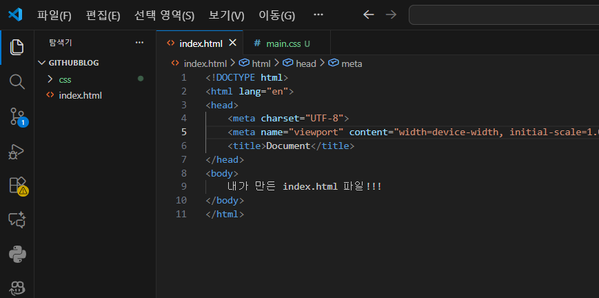 깃허브(github)에 html, css 그리고 js파일까지 올려봤다.