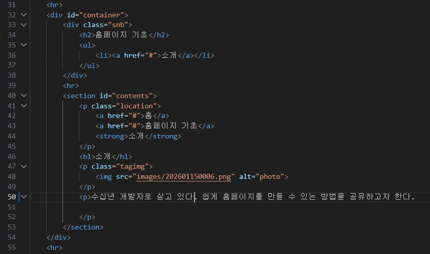 해당 부분을 32~54라인까지 container 의미인 div로 묶었다.