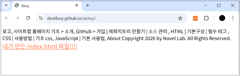 GitHub Pages에서 블로그 만들기. Html로 레이아웃 만들어 보기. header, content, footer