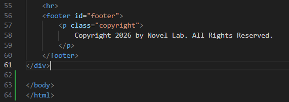Footer에는 보통 copyright 등 저작권 표시, 연락처, SNS 등을 넣는다.
