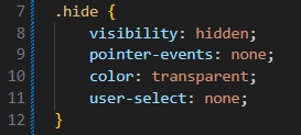 글자를 숨기고 그 자리는 보존하는 css 코드다.