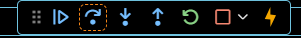디버그(Debug) 모드가 되면 화면 상단에 아이콘들이 나타납니다.