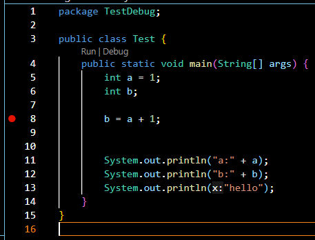 위 이미지를 보면 8번 라인 앞에 어두운 빨간 점이 있습니다. 마우스를 8번에 가져가면 저렇게 나옵니다.