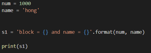 원하는 위치에 중괄호{}만 넣고. format() 함수를 사용하고