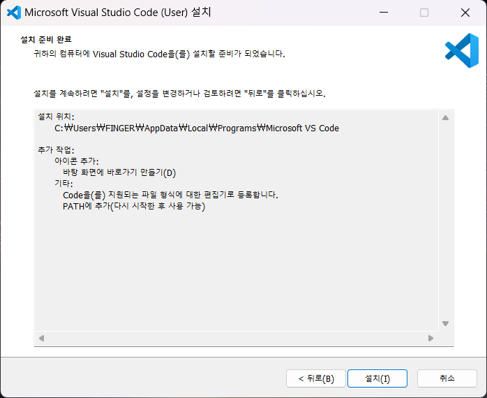 사실 체크박스를 선택하지 않았다면 Finish에서 설치는 끝납니다.