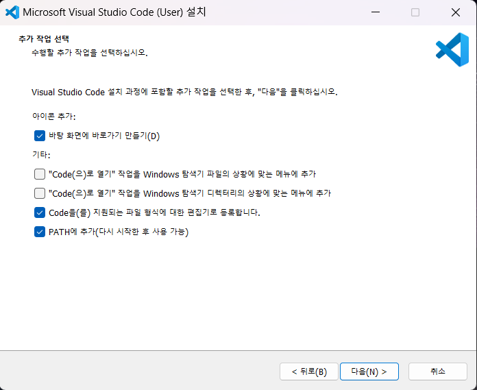 기본 상태로 설치해 보겠습니다. 체크 박스는 체크하지 않습니다.