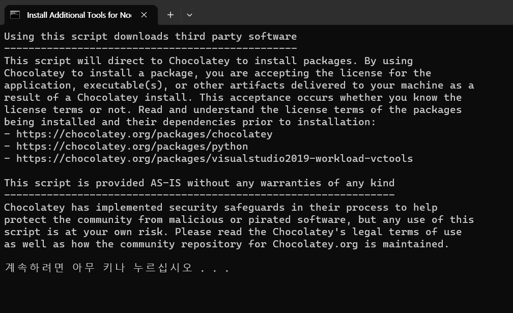 이제 설정이 끝났으니 node.js를 설치할 수 있습니다.