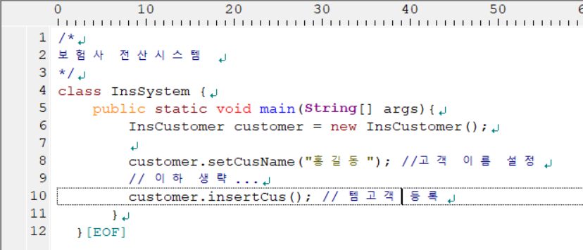 InsGoodSubClass는 InsSuperClass의 같은 필드와 메서드를 상속받았고 사용할 수 있게 되었다. 상속으로 서브 클래스는 읽기 쉽게 되었지만 각 서브 클래스에서는 슈퍼클래스의 상태와 행위가 나타나지 않으므로 적절하게 문서화 작업을 할 수 있도록 주의해야 한다.