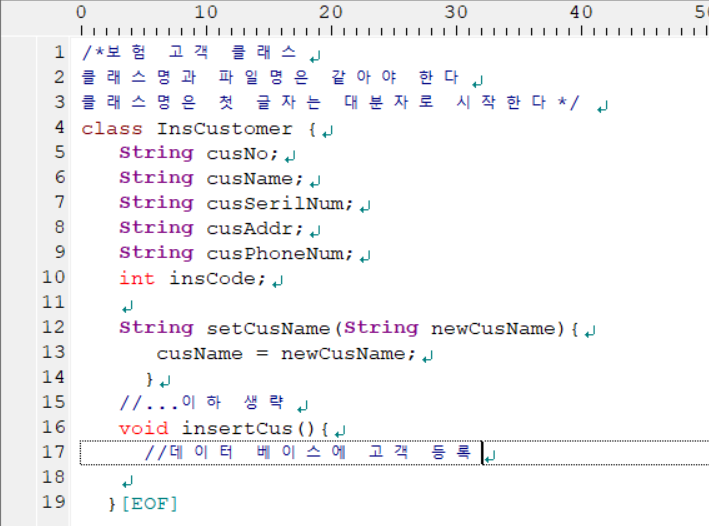 이렇게 4개의 필드와 해당 필드를 입력하고 꺼낼 수 있는 메서드를 구현한 슈퍼 클래스를 이제 보험상품 클래스에서 상속해 보겠다. 상속을 할 때는 extends 키워드를 사용한다.