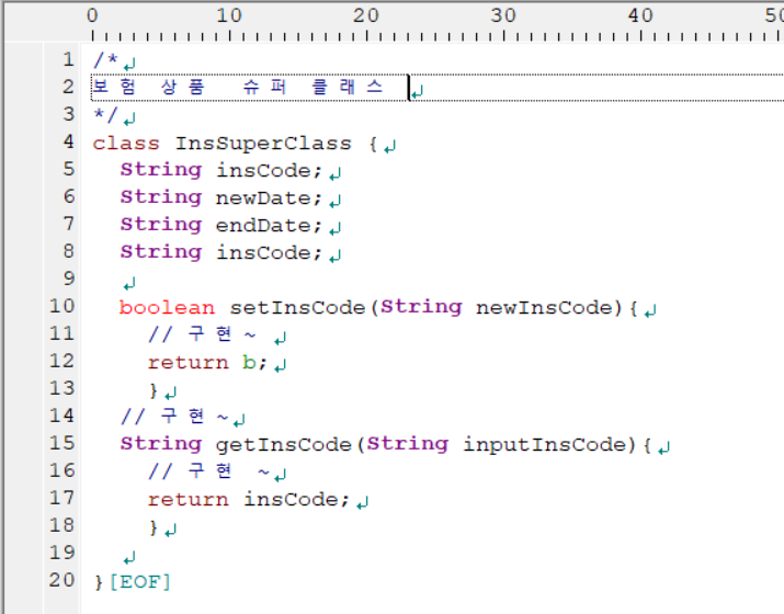 자바 프로그래밍에서는 주의해야 할 점이 있다. 보험 상품의 공통되며 필수인 필드와 메서드를 가지고 있는 슈퍼 클래스는 하나만 만들 수 있다는 것이다. 2개 이상을 만들어도 클래스는 1개의 슈퍼 클래스만 상속 받을 수 있기 때문에 의미가 없는 것이다. 사용할 수 없다. 모든 보험 상품의 필수 데이터와 행동을 사용하게 할 수 있는 것이다.