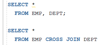 ANSI 가 아닌 일반적으로 사용할 때는 두 테이블을 FROM절에 콤마(,)로 나열하고