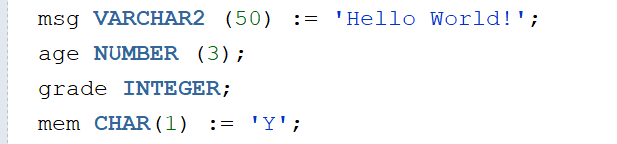 위 예제를 보면 VARCHAR2, CHAR, NUMBER 등의 타입을 지정해서 사용했습니다.