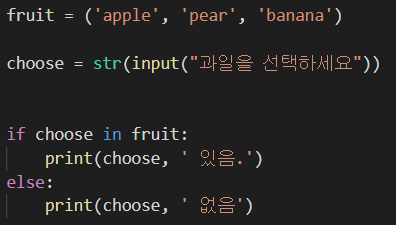 이제 리스트 또는 튜플을 조건문에 사용하는 방법을 알아봅니다.