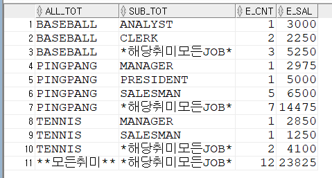 전체 조회된 행에 대해 소그룹을 지정한 컬럼으로 만들 수 있습니다.