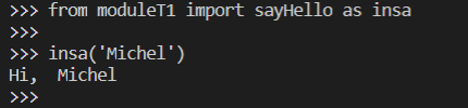 from moduleT1 import sayHello 또는 from moduleT1 import * 로