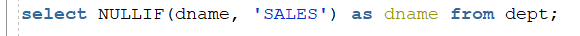 3번째 dname값이 'SALES'면 NULL을 반환한다는 표현이기에 NULL로 변경된 것을 확인할 수 있습니다.