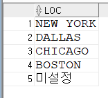 먼저 dept테이블의 loc 컬럼에 NULL값을 넣고 입력합니다.