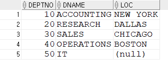 coalesce(loc, dname)으로 표현식을 만들었는데 5번째 loc값이 NULL이어서 그다음 dname값인 IT가 나온 것을