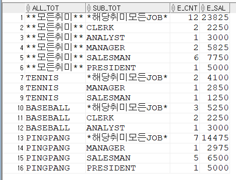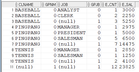전체 조회된 행에 대해 소그룹을 지정한 컬럼으로 만들 수 있습니다.