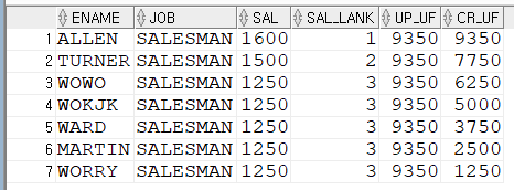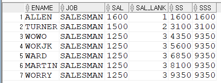ROWS로 하면 SALESMAN의 급여 순서대로 합계를 만들어 쭉 보여줍니다.