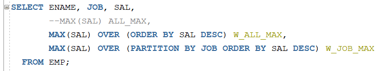 PARTITION BY를 빼면 전체 결과값에서 최고 SAL을 구하게 됩니다.