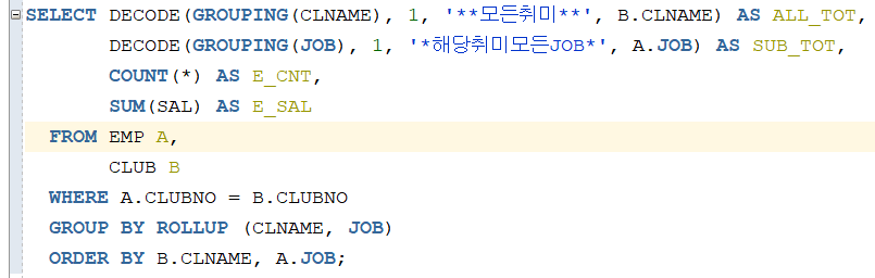 | [HOW]SQL 그룹 함수(ROLLUP, CUBE, GROUPING, GROUPING SETS) 사용하는 방법, 오라클(ORACLE) (0) | 2020.09.20 |