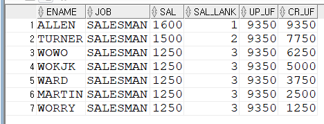 CR_UF를 보시면 값이 바로 앞의 행 SAL 수치만큼 줄어드는 것을 볼 수 있습니다.