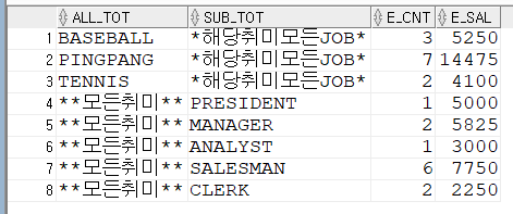 JOB_MAX는 JOB별 합계를 보여줍니다.