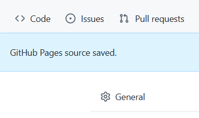 "GitHub Pages source saved." 메시지로 저장 성공이다.