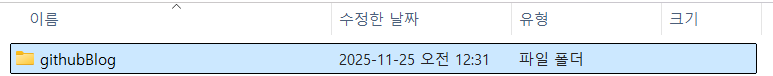 githubBlog라는 이름으로 만들었다.